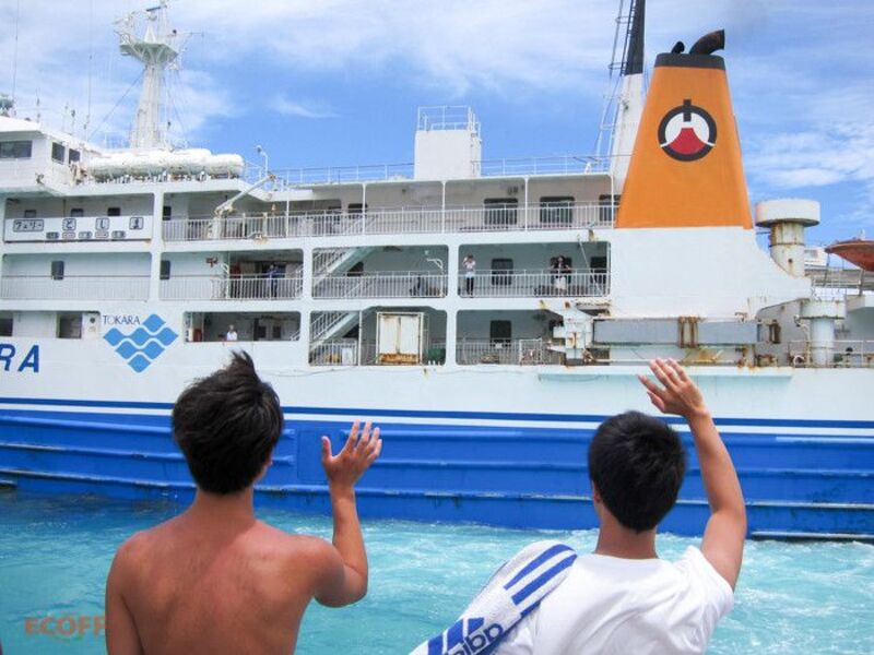活動1日目21時に鹿児島港で参加者同士で集合し、「フェリーとしま」に乗船して翌日「十島村宝島」に到着します。 |