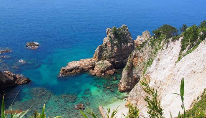 また、ジオパークに認定された島の自然は雄大。海岸は絶壁で、島を囲む海はとても透明度が高く、海の中にはたくさんの魚が見られます。