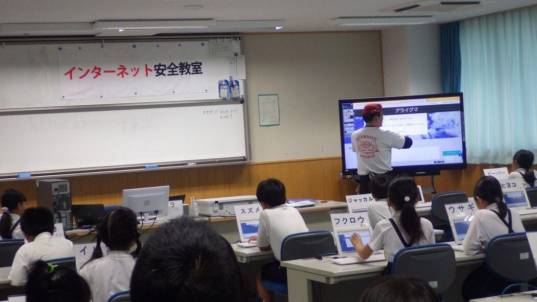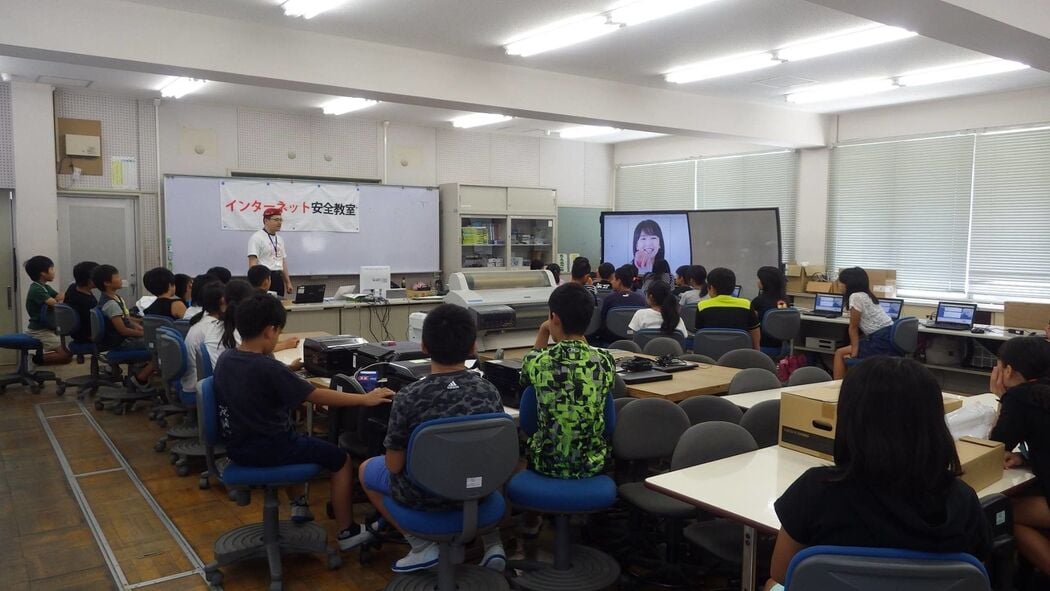 市内・小学校や中学校でSNSの安全な利用方法についての「インターネット安全教室」を開催しています