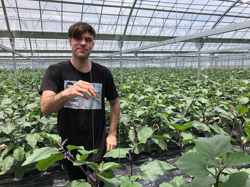 ナスを紐で吊ったり、草むしりをしたり、袋詰めをしたり、