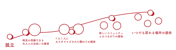 「自分は頑張っても意味がない」 「誰も助けてくれない」貧困や虐待、不登校、若年妊娠・出産などの様々な状況にある子どもたちは、「孤立」という課題を抱えています。孤立した子どもたちは、人と信頼関係を築いたり、何かあった時に助けを求めたり、何かをやりたいと願ったり、主体的に意思決定をすることが難しくなります。そうした状態になるとさらに孤立し、困難が大きくなります。