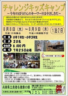 - 8月8日~9日 チャレンジキッズキャンプリーダー募集