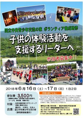 国立中央青少年交流の家 「ボランティア養成研修」参加者募集中
