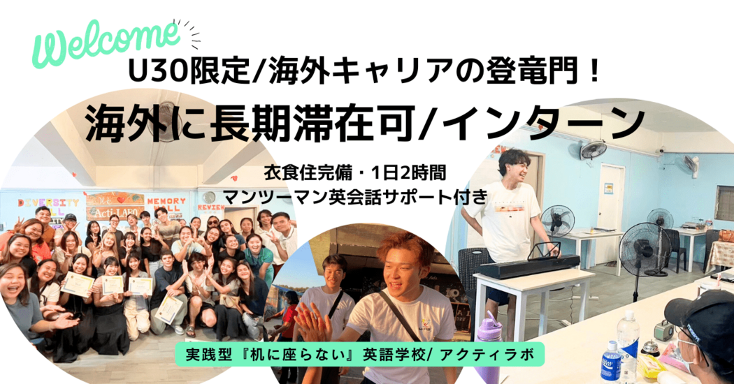 - 1名のみU30限定|海外キャリアの登竜門!衣食住完備!語学学校の中核インターン枠