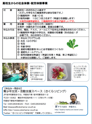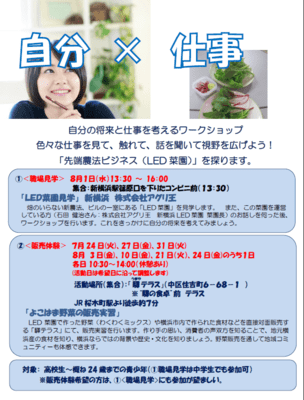 - 夏休み!高校生からの社会体験「LED菜園見学」と「よこはま野菜販売体験」