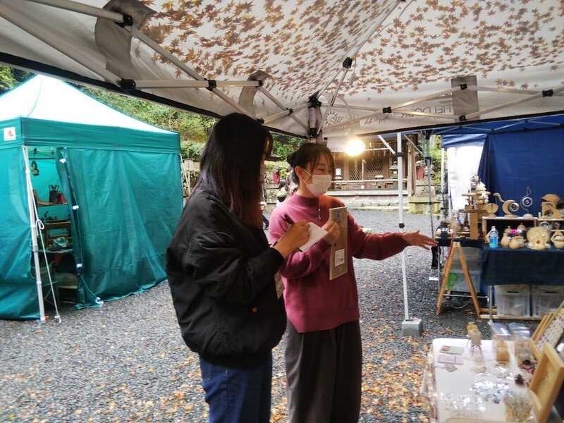 出展者さんへの取材、神社の周りの道の清掃活動や手作り市のチラシを配ったり見どころ案内などをしていただきます。