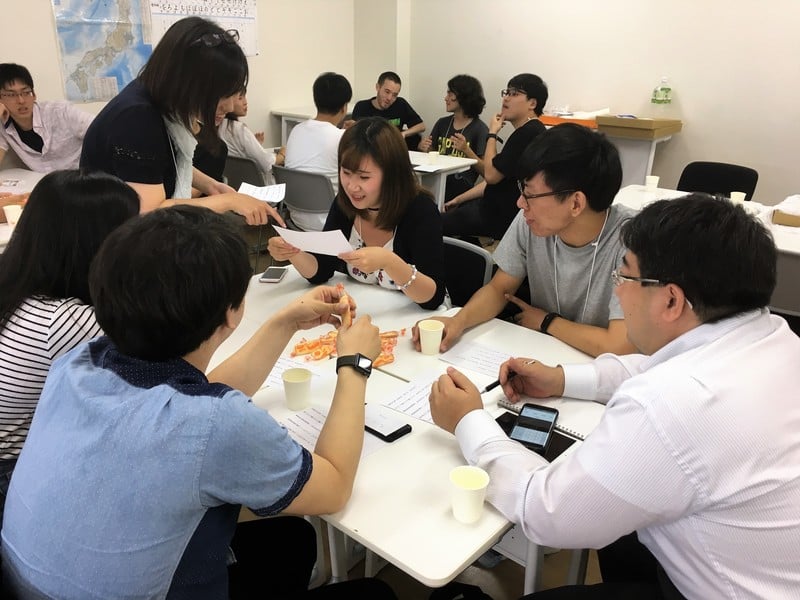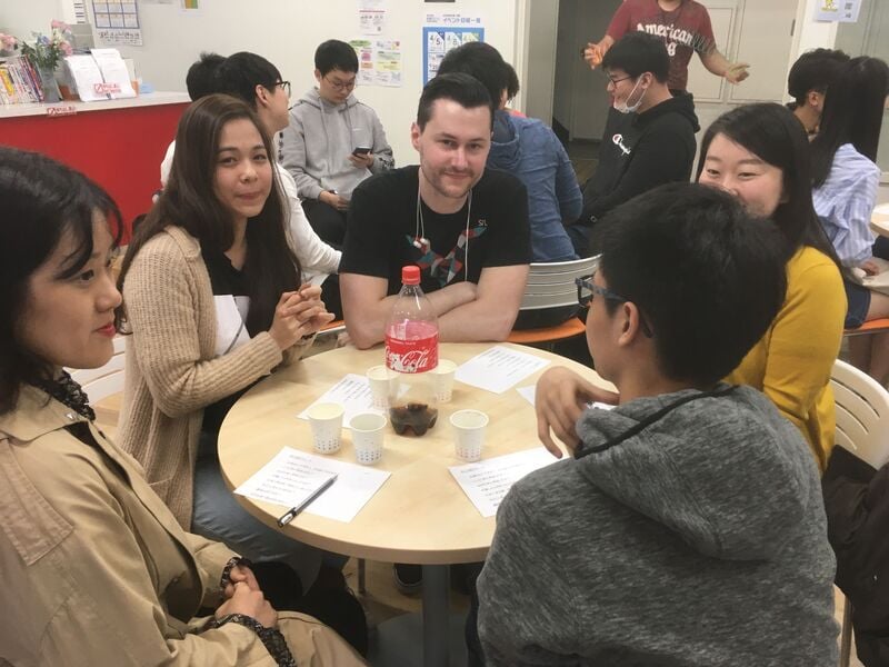 3~5人のグループに分かれて日本の文化や習慣、ゲームなど、毎回テーマを変えて話します!