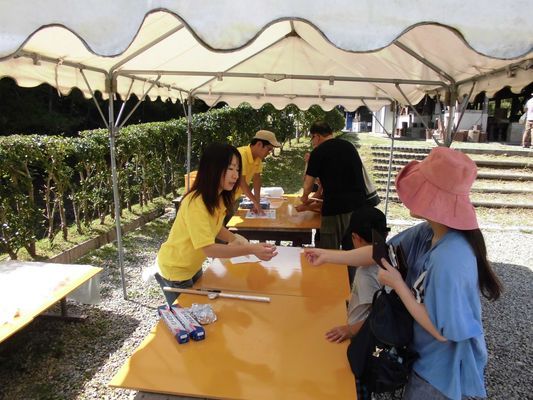 ボランティアさんにお願いしたいのは、野外炊事棟ブースのプチ・アマゴつかみ、手作りわらび餅作り体験、棒焼パン作り体験、木のクラフト体験の指導になります。スタッフ、経験者が近くにいるので心配はありません。