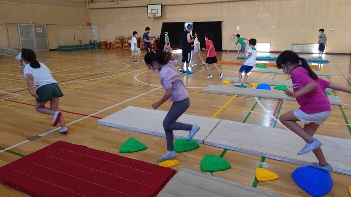 体を動かしながらゲーム感覚で楽しめるオリジナルプログラム作りを行っています。