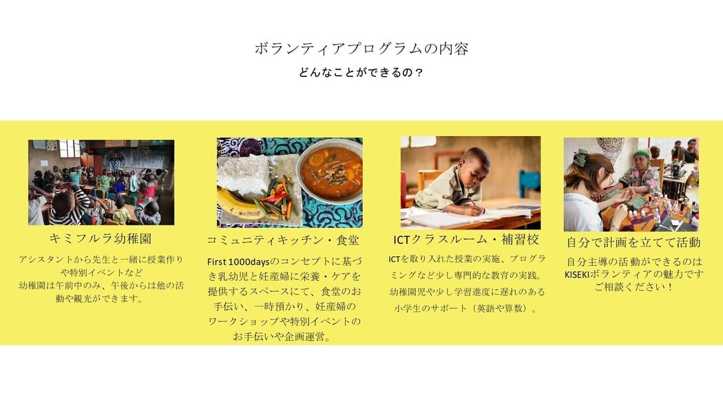本プログラムは1週間500ドルとなっておりますが、さらに長期での活動をお求めの方には長期のプランもございます。