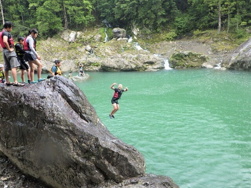 【内容】泳いだり岩から飛び込みをしたり川遊びを楽しんだ後、夕食はアウトドアクッキングに挑戦!
