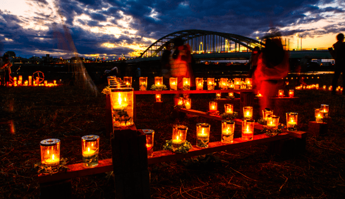 多摩川河川敷の芝生広場にたくさんキャンドルを並べたり、音楽を奏でたり、ワークショップを実施したりするイベントを一緒に企画しませんか?【打ち合わせは都内で月1〜2回】【環境とアート】【20〜30代】
