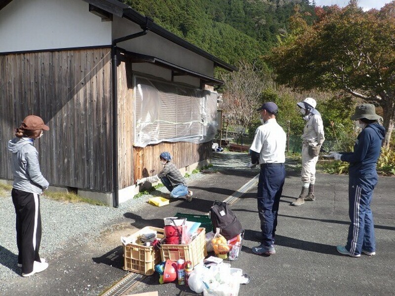 大杉谷地域には、山里への移住を目指す人に、地域の暮らしを知っていただくために仮移住ができる家として、大杉谷移住体験住宅があります。体験住宅の塗料は、人や環境への配慮と、地域で柿渋を作っていた文化を取り入れ、柿渋塗装にしています。そのため、特に外壁の定期的な塗り直しが必要です。大杉谷の柿で柿渋を作り、柿渋を塗っていただける方を募集します。