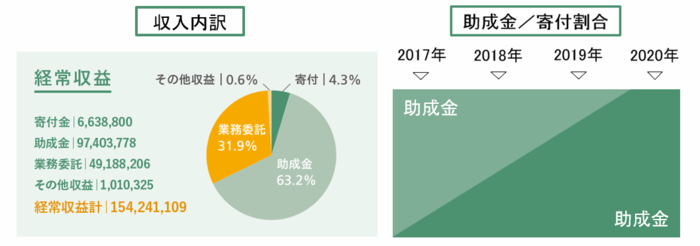 一方で「寄付型」は、財源の多くを、個人や団体・企業からの寄付や会費などから得ながら運営しいるNPOです。一般的にその事業を通して、受益者から直接、金銭的対価を得られないケースが多いため、寄付収入を中心としたNPOが多いです。「子どもの貧困」問題に取り組む Learning for All は、経済的に困難を抱えている子どもたちを対象(受益者)とした事業なので、となります。