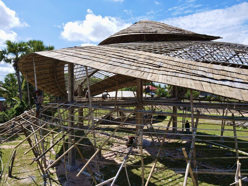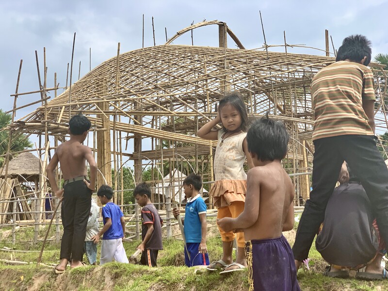 カンボジアでは30人しかいないプロの竹建築職人さんを呼び、たくさんのことを教えてもらいながら確かな竹建築が進んでいます。