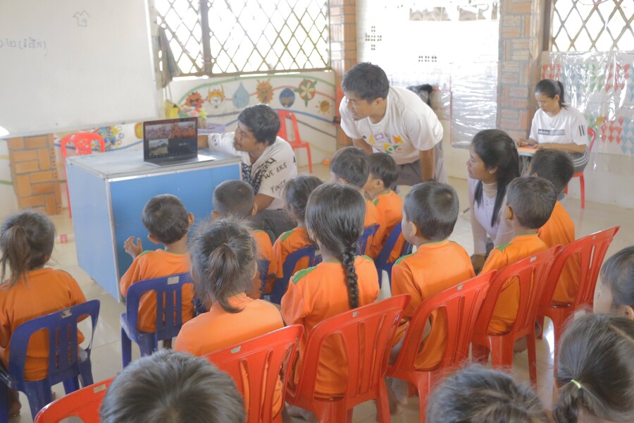 世界的に活躍している絵本作家・谷口智則さんとの共同企画としてカンボジアの教材絵本『おねぼうなたいようさん』を完成させ、読み聞かせ企画を実行する。