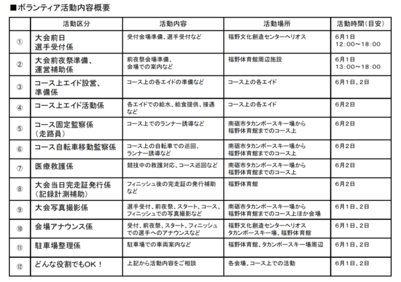 - 第2回南砺100キロマラニック ボランティアスタッフ募集!