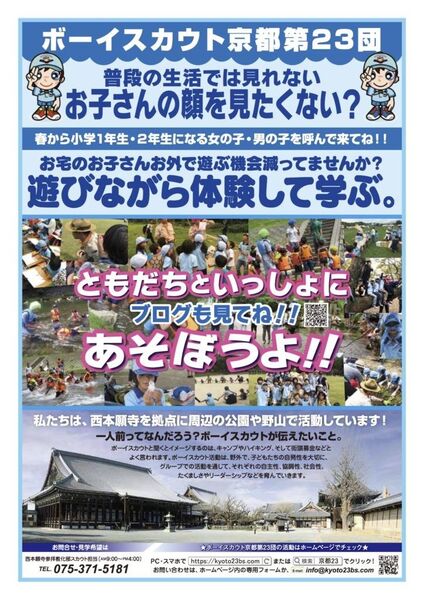 京都府には現在59個の団が存在し、京都第23団は西本願寺を拠点に六十余年の歴史を刻んで参りました。