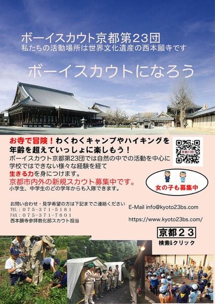京都第23団は西本願寺を拠点に六十余年の歴史を刻んで参りました。