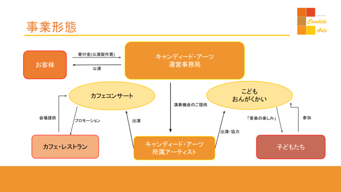 キャンディード・アーツは音楽サークルではありません。音楽イベントを運営し、やってみた結果からフィードバックを得て改善する活動をしている音楽事務所です。