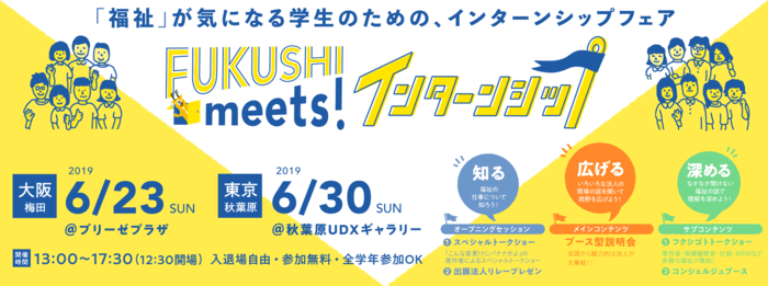 2019年6月23日(日)に大阪で行う「FUKUSHI meets!インターンシップ@大阪」は、「福祉」が気になる学生のためのインターンシップフェアです。