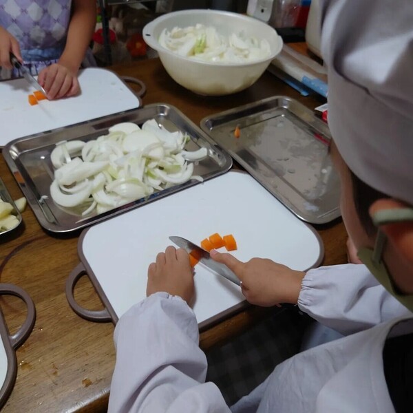 お食事の時は他の子のために準備を手伝い皆で手を合わせて「いただきます」