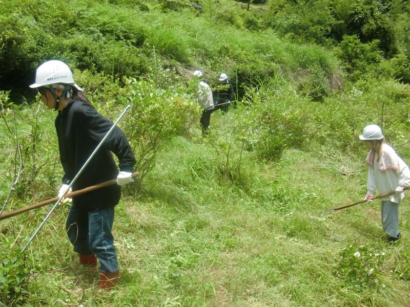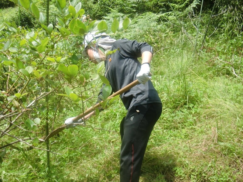 下草刈り、除伐、大鎌研ぎ体験、交流会ほか