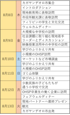 フィールドスタディの詳細についても、以下の順番でご紹介させていただきます。