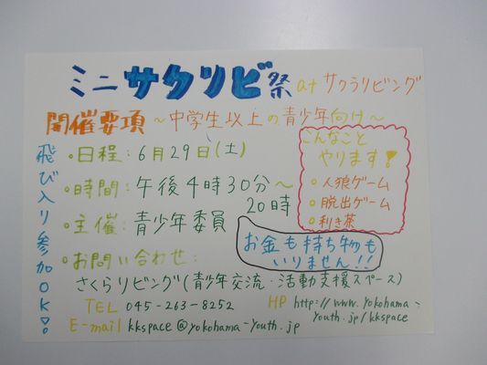 - 中学生以上の青少年が参加できます! 青少年委員主催:ミニさくリビ祭