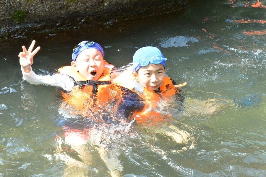 7月の活動は「サマーキッズキャンプ 川遊び編」、施設目の前にある清流「釈迦院川」での川遊びをはじめ、野外炊飯、ナイトハイク、プール遊びなどを行う予定です。