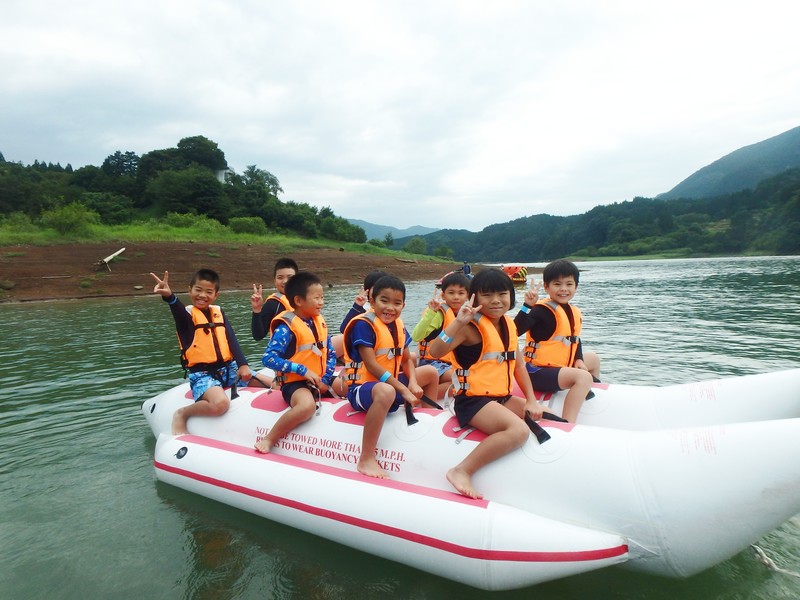 8月の活動は「サマーキッズキャンプ 湖遊び編」!美里町の緑川ダム湖を舞台にカヌーやバナナボート体験、木工創作活動やプール遊びなどを行います。