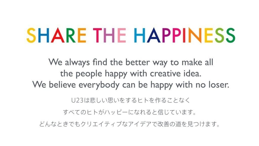 U23は、2001年からノマドライフの創業者内海賢祐が、2003年にトロントで留学中に創業した、あたらしい生き方・働き方を応援するエージェントです。人・アイデア・夢をつなぎ、SHARE THE HAPPINESS《ハッピーの共有》を実現し、イノベーションスピリッツを高めCHANGE THE FUTURE《未来の変革》に挑戦します。