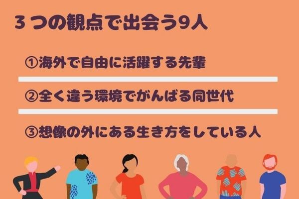(例:海外で活躍するフリーランサー、社会起業家、駐在員、フィリピンの現地農家、NGO職員など)