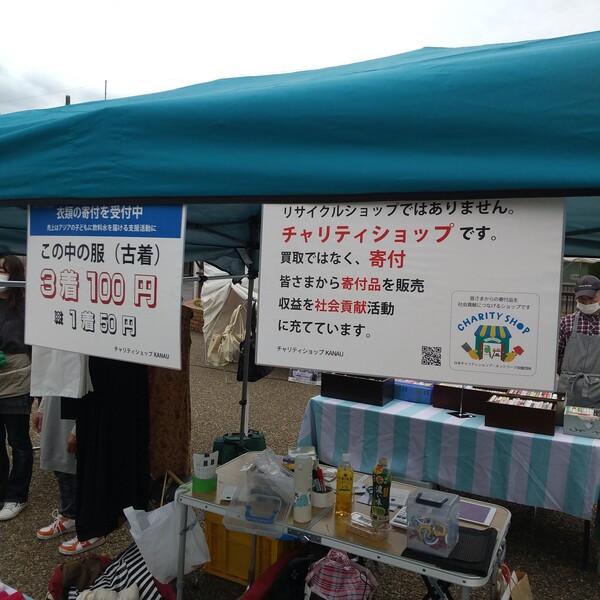 アジアの村に井戸を贈るためのチャイティーフリーマーケットです。衣類や雑貨などの寄付品を販売しているKANAU店として参加します。収益を国際協力活動に寄付するイベントとなります。