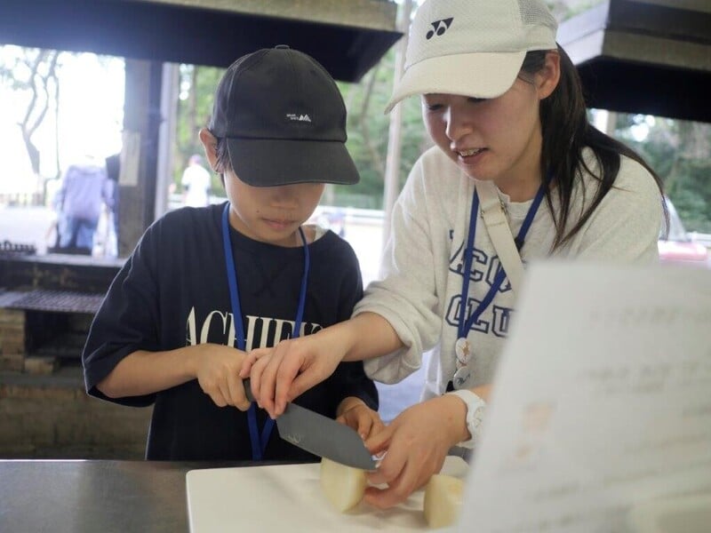 ・食事:子どもたちと一緒に食事をします。(野外炊飯や食堂利用)