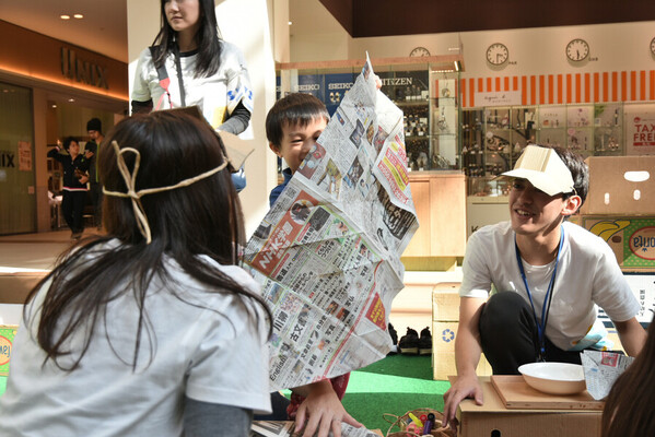 新聞紙をつかってイザというときに役立つ防災グッズの作り方を図工形式で体験できます