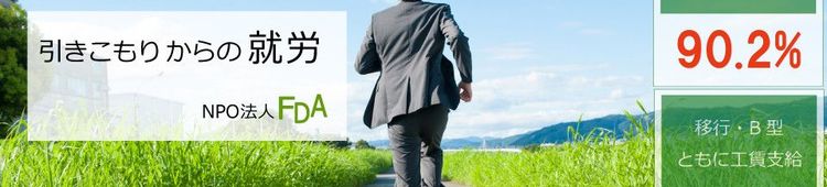 FDA(Future Dream Achievement)とは、障がい者、ひきこもり、ニート、ホームレス、うつ病患者ニア、ワーキングプア等の就労を目的とし、就労希望者・支援希望者の集える環境の創造と仕組みの提供を行うことを大儀(目的)として活動していく、非営利団体です。