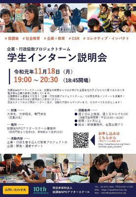 - 「社会で子どもを育てる」教育NPO団体の学生インターン募集!