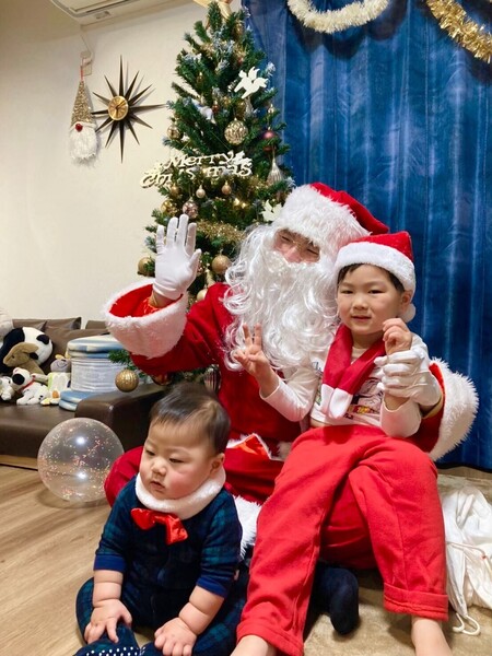 サンタさんが家に来たとき、初めはお母さんの陰に隠れているような子や、出会った瞬間から抱きついてきてくれる子たち、様々ですが、プレゼントを渡すと笑顔が弾けます!