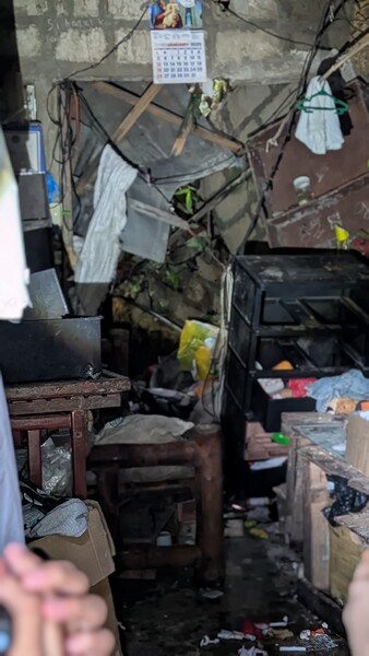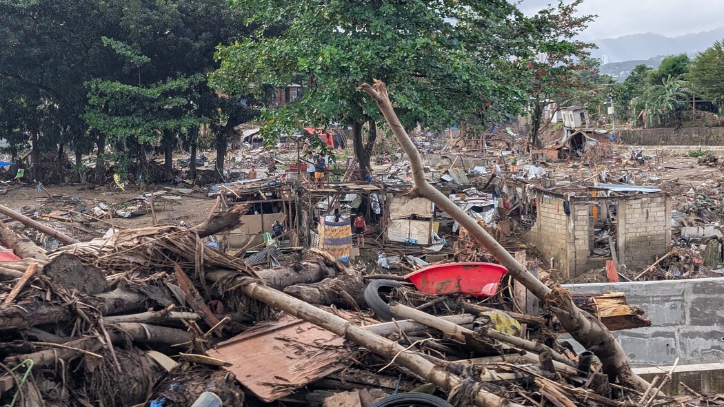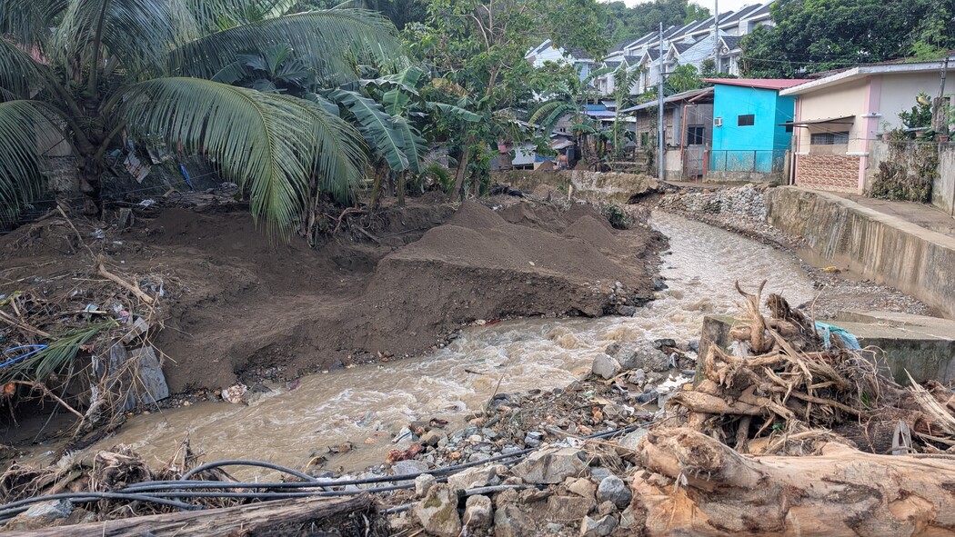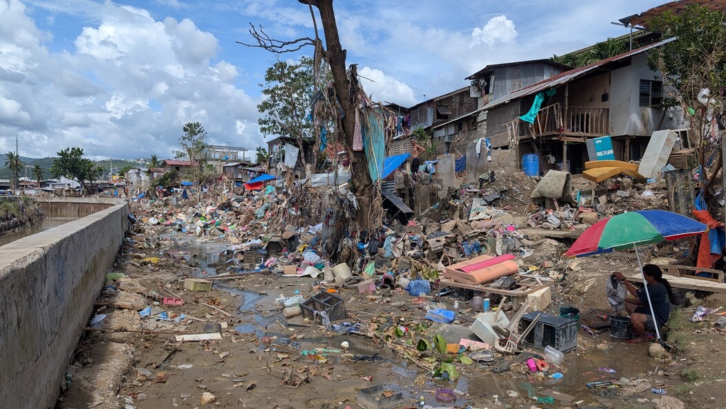 2025年11月4日の台風で大きな被害を受けたセブ島市内の川沿いの集落があります。