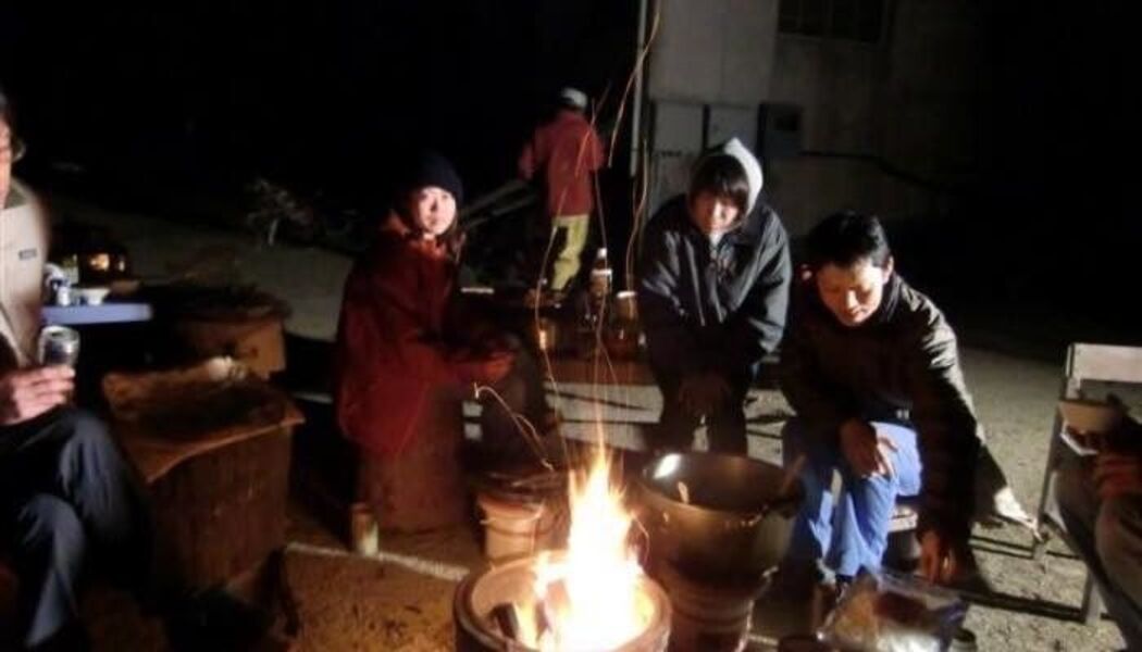 全員集合後 宿泊場所へ → 宿泊場所案内 → 火の使い方講習 → 食事 → 風呂 → 就寝