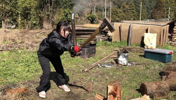 地域住民や、そこで働く方々と一緒に炭焼きや薪割、山菜採りなどができます。
