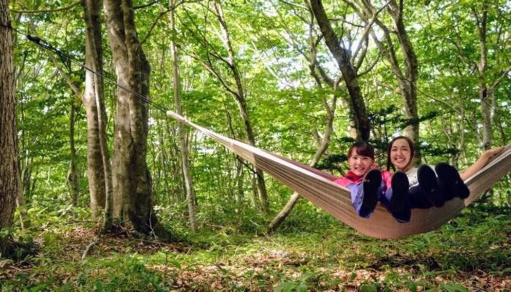 ハンモックに揺られ、湧き水でコーヒーを飲み、何もしないをする時間。夜には満天の星空ツアーへ。