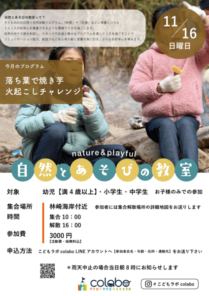 (単発OK)11/16自然あそびの教室 【明石・神戸近辺の方大歓迎】