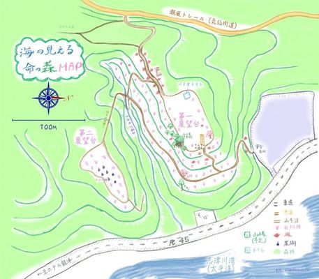 志津川湾の中央に位置する展望に優れた森を整備し、新たな慰霊と伝承の場所を創生する『海の見える命の森創り』は2016年にスタートしました。本企画は震災伝承と慰霊の場所そのものを『桜と海の絶景』として計画的に創生することにより、震災伝承の補助をし、絶景が呼び込む交流人口の増加などを狙い企画いたしました。2018年度は3年目に入り、2017年度設立された南三陸ホテル観洋と南三陸町民有志で構成された海の見える命の森実行委員会が組織されました。観光客の方や、子ども達の環境学習の場としても気軽に訪れられる海の見える森とし、散策路のコースを整備拡充には尽力できました。更に今年度はたくさんの人が集まるために必要不可欠な拠点施設、自然にやさしいバイオトイレの設置、地元素材に拘った天然小屋等の拠点施設の整備をし利便性を高めつつも観光エコの推進も視野にいれて活動を展開します。