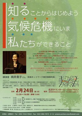 長年、地球温暖化対策に力を尽くしてこられた桃井貴子さんから"難しいことをわかりやすく"をモットーにご講演いただきます。