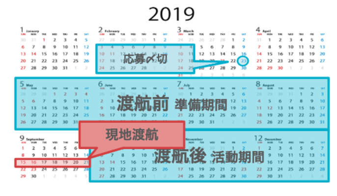 への現地渡航は9月13日~19日(現地集合現地解散)ですが、プログラム全期間(2020年5月〜2021年3月頃)では、基本的にオンラインベースでの交流・作業を行います。また、国内数カ所で渡航前勉強会や渡航後報告会などイベントも予定しております。 |