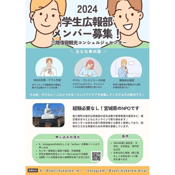 三陸復興観光コンシェルジェセンター広報部ボランテイア大募集