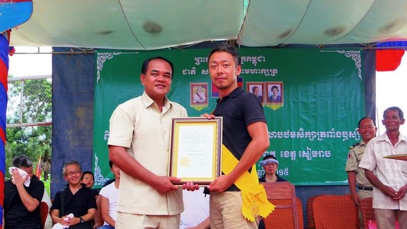 これまでの活動が認められカンボジア王室から感謝状を授与。