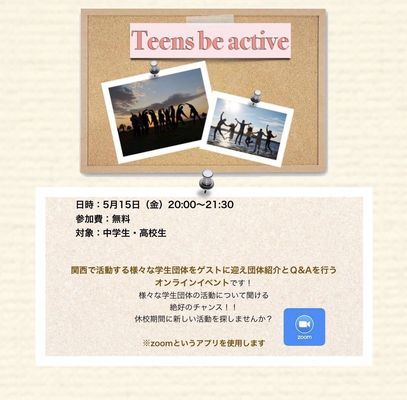 この募集の受入団体「高校生団体Teens関西」をフォローして、